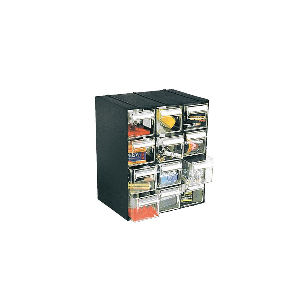 Serie HOBBY Assemblabile ad incastro superiore 12cassetti trasparenti con portaetichetta Misure blocco: mm 190x142 h 228 Misure cassetti: mm 59x139 h 51