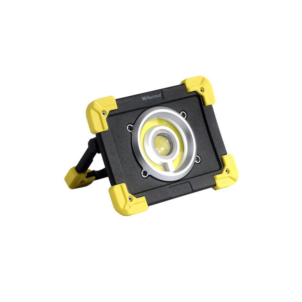 Modello portatile con supporto pieghevole Corpo plastica e alluminio 1 led watt 20 lumen 1200 Fascio luce ANSI m 200 3 regolazioni luce: concentrata, aperta, SOS Power bank USB Supporto regolabile multiposizione Dimensioni cm 17x4,2 h 13,2 Protezione IP65 Batterie litio 2x18650 mAh 2200 incluse