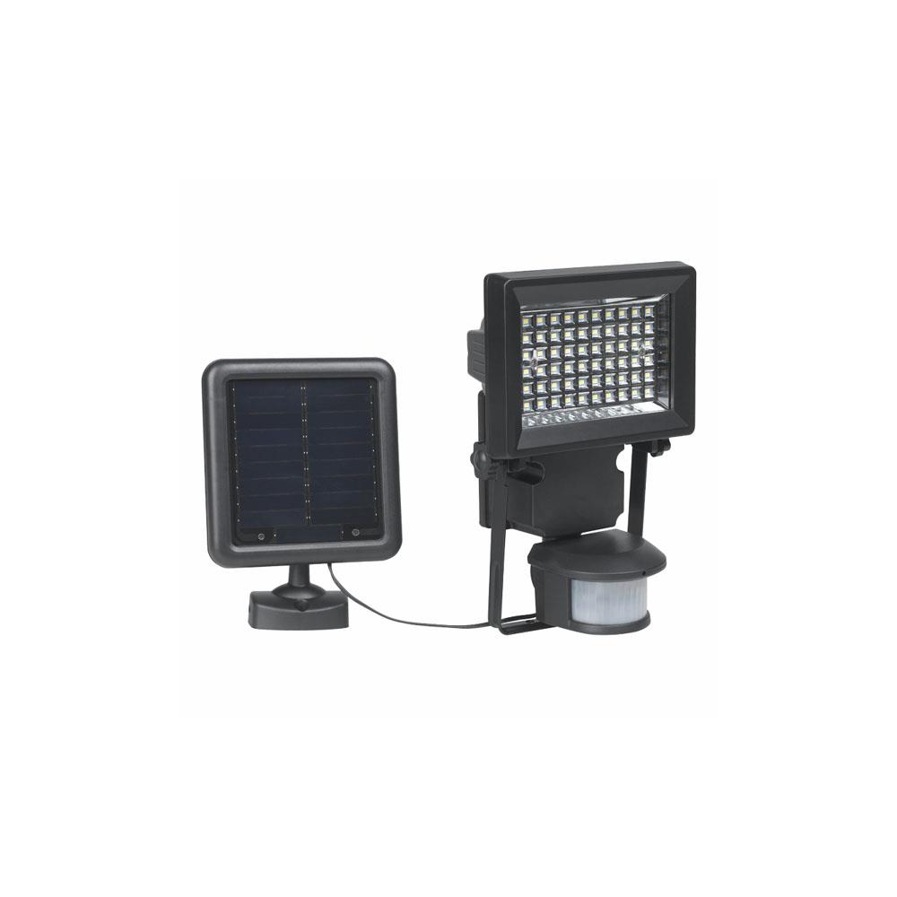 Struttura ABS, acciaio e vetro - Colore nero Pannello solare indipendente - Cavo m 4,5 Lampadina tecnologia Led - 60 led 400 lumen Autonomia h 2 - Protezione IP44 - Luce 4600^K Sensore movimento 120^- Fascio luce ANSI m 15 Angolo luce 120^ orientabile Dimensioni faretto cm 14,5x8,8 h 22,6 Dimensioni pannello cm 12,4x4,5 h 17 Pile ricaricabili Ni-Mh 5 stilo AA 1500 mAh