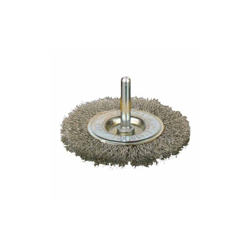 Spazzola a disco con codulo mm 6 Fili acciaio inox ondulati mm 0,30 Diametro mm 50/75/100 Spessore mm 5/7/9 Adatta per lavori leggeri manutenzione e pulizia