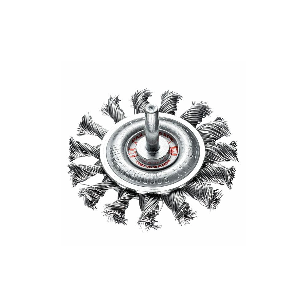 Spazzola a disco con codulo mm 6 Fili acciaio ritorti mm 0,50 mazzetti 15 Diametro mm 70 - Spessoremm 10 Altezza fili mm 15 Adatta per eliminazione scorie, ruggine, vernici