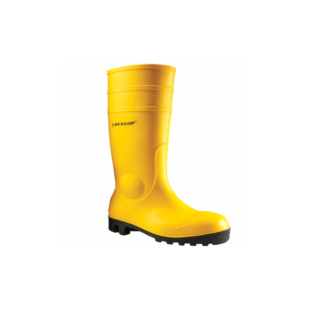 Tomaia e suola PVC - Fodera interna poliestere Colore giallo Puntale e lamina acciaio Suola carroarmato nera antishock, antiscivolo e antistatica - Resistente oli e agenti chimici Protezione classe S5 - EN ISO 20345:2011