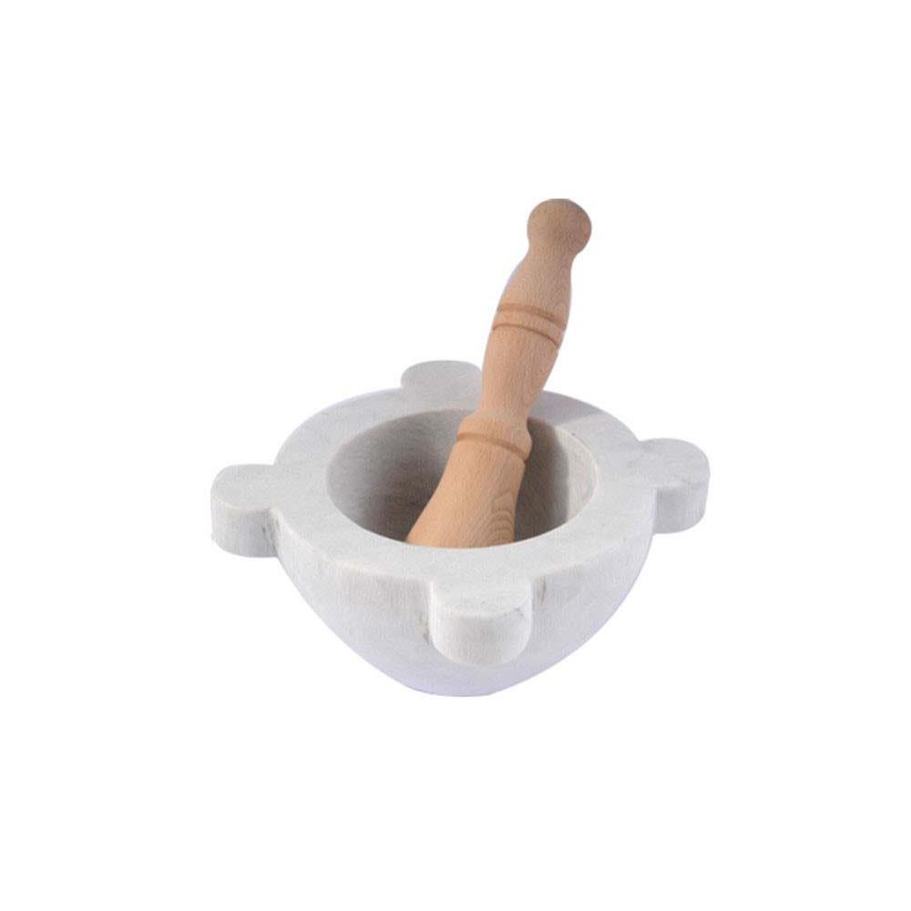 Marmo di Carrara - Produzione artigianale Finitura naturale Pestello tornito in legno Peso kg 0,24/0,70/1,70/3,00/4,00/5,00 Diametro utile interno cm4,5/7/9/10/12/13