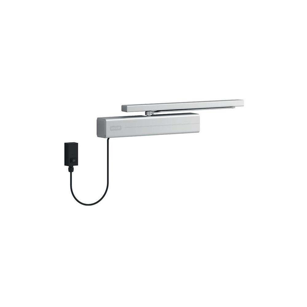 Corpo monoblocco ghisa - Custodia ABS - Multiforza Braccetto acciaio con arresto Regolazione velocita' chiusura e forza colpo Porte destre e sinistrea battente esterne Regolazione forza chiusura EN2/3/4/5 Porte cm 85/125 Dimensioni 182x71x71