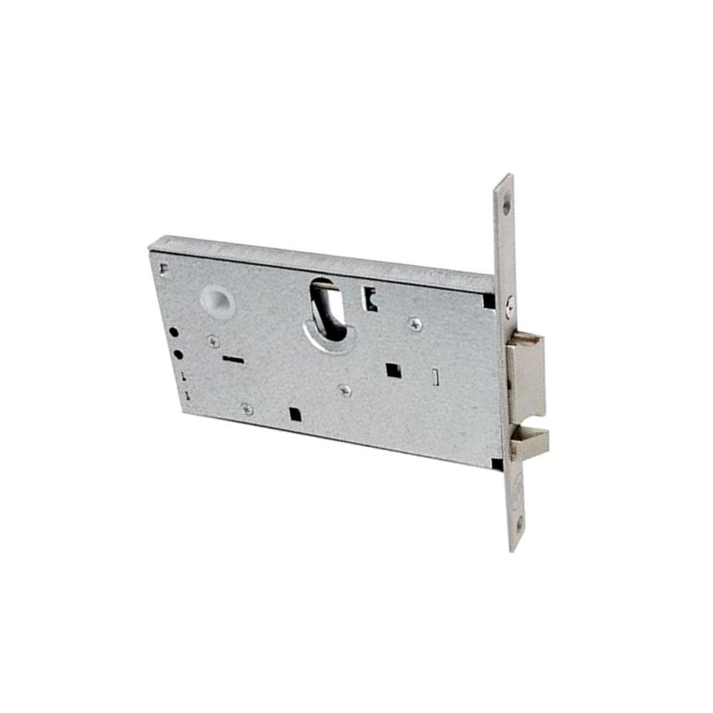 Elettroserratura V 12 porte alluminio infilare Acciaio zincato - Frontale inox - Senza incontro Scrocco catenaccio e pistone ricarica reversibili Quadro maniglia mm 8 Cilindro ovale non incluso Scatola mm 147x78 - Frontale mm 16x155