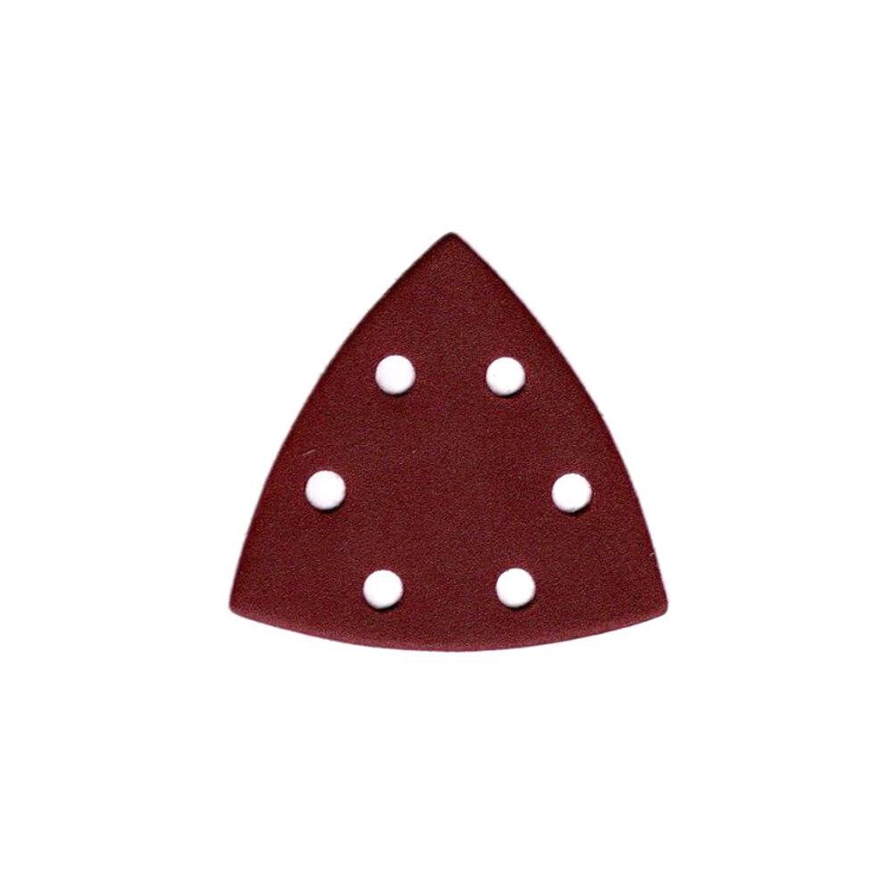 Carta abrasiva al corindone 6 fori Supporto velcrato - Forma triangolare Dimensioni mm 135x95 Ideale per levigatura di legno e metallo Adatto per levigatrice delta ONLY1 codice 79754