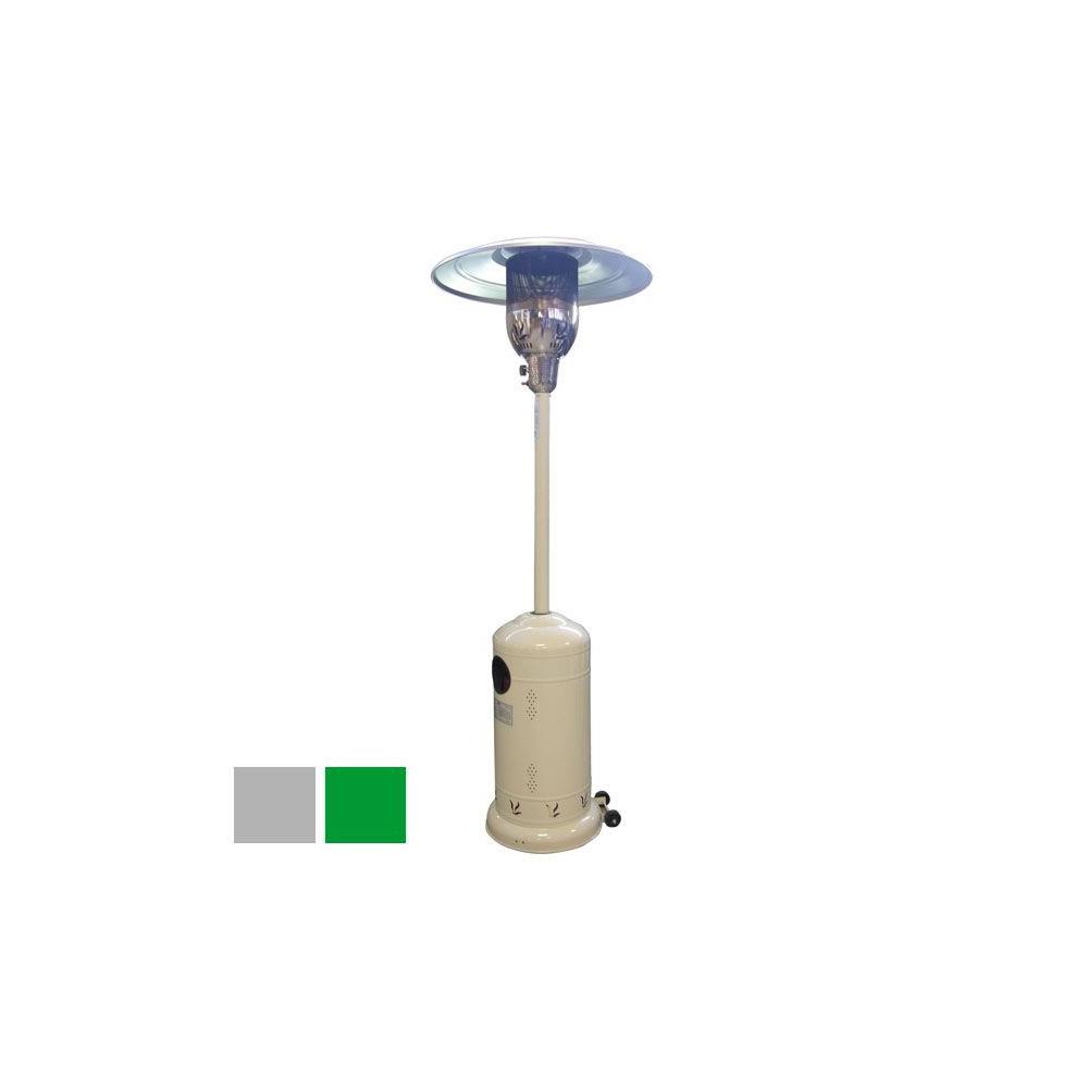 Dimensioni h cm 224 - Peso kg 22 circa Potenza kW5/13 - Consumo g/h 450/870 Infrarossi ad onde di calore Struttura acciaio verniciato Uso ambienti esterni Dotazione ruote trasferimento Regolatore gas GPL fisso 30 mbar non in dotazione Non adatta a funzioni di riscaldamento primario