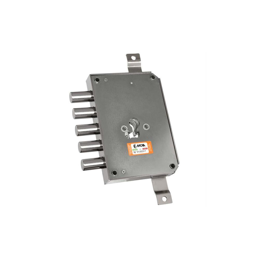 Serratura cilindro europeo Infilare porte blindate - Movimento ad ingranaggi Fori protettore mm 38 2 chiusure verticali Catenacci laterali 5 pistoniInterasse catenacci mm 28 Scatola mm 122x177x30 -Entrata mm 63 Cilindro e aste non compresi Compatibile serrature Cerutti