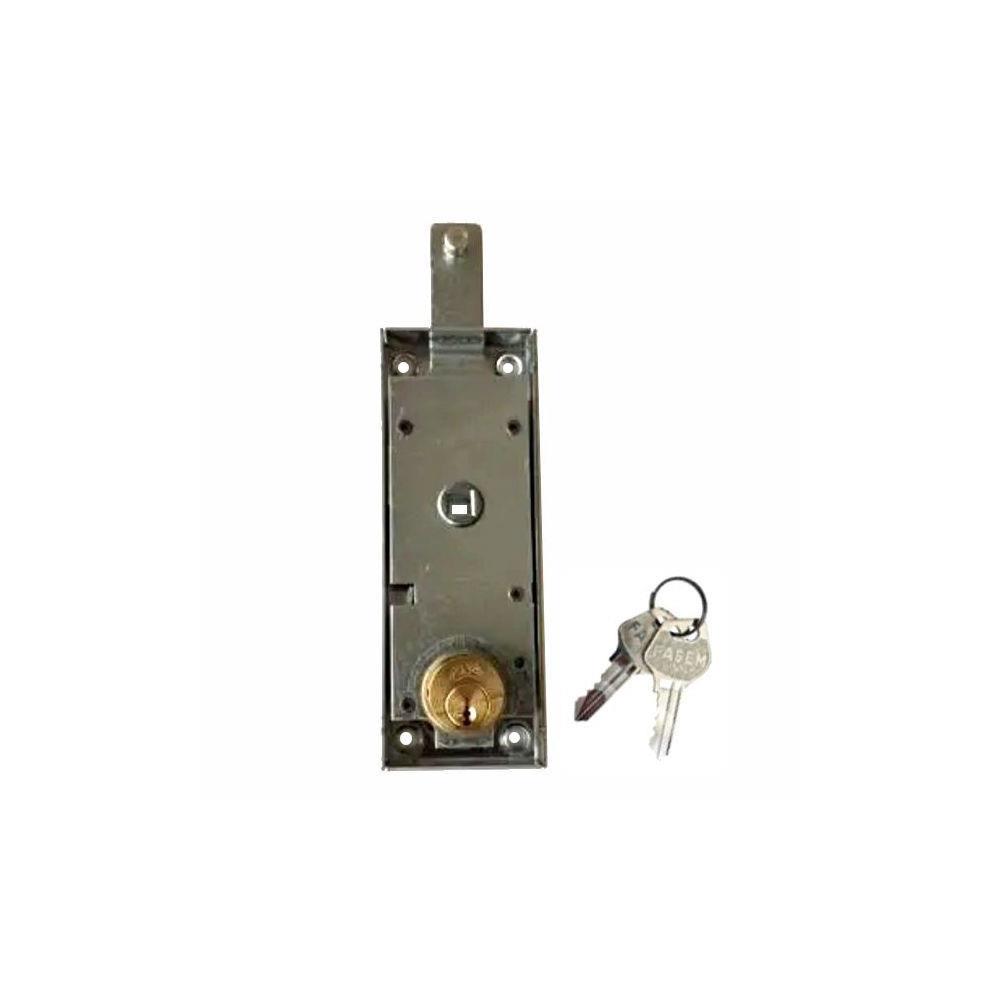 Serratura zincata per porte basculanti Catenacciosuperiore diritto - Quadro mm 8 Sbloccaggio esterno/interno chiave Maniglia interna/esterna non inclusa Scatola mm 56x156x15 - Cilindro tondo mm 25x13 Dotazione 2 chiavi