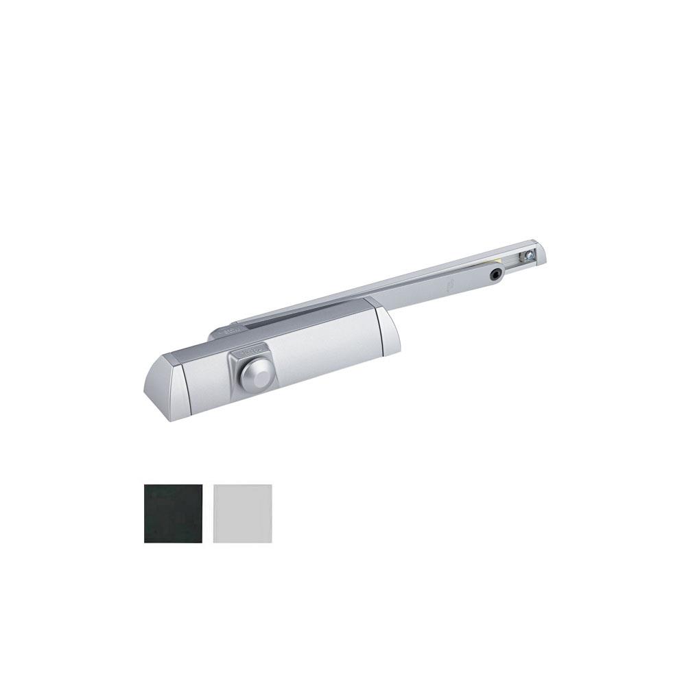 Corpo monoblocco acciaio - Custodia ABS Braccettofisso con guida a scivolo senza arresto Regolazione forza chiusura EN 3/4 Regolazione velocita' chiusura e forza colpo Porte destre e sinistre a battente Meccanismo interno albero a camma Porte cm 110 Lunghezza mm 246 - Profondita' mm 46