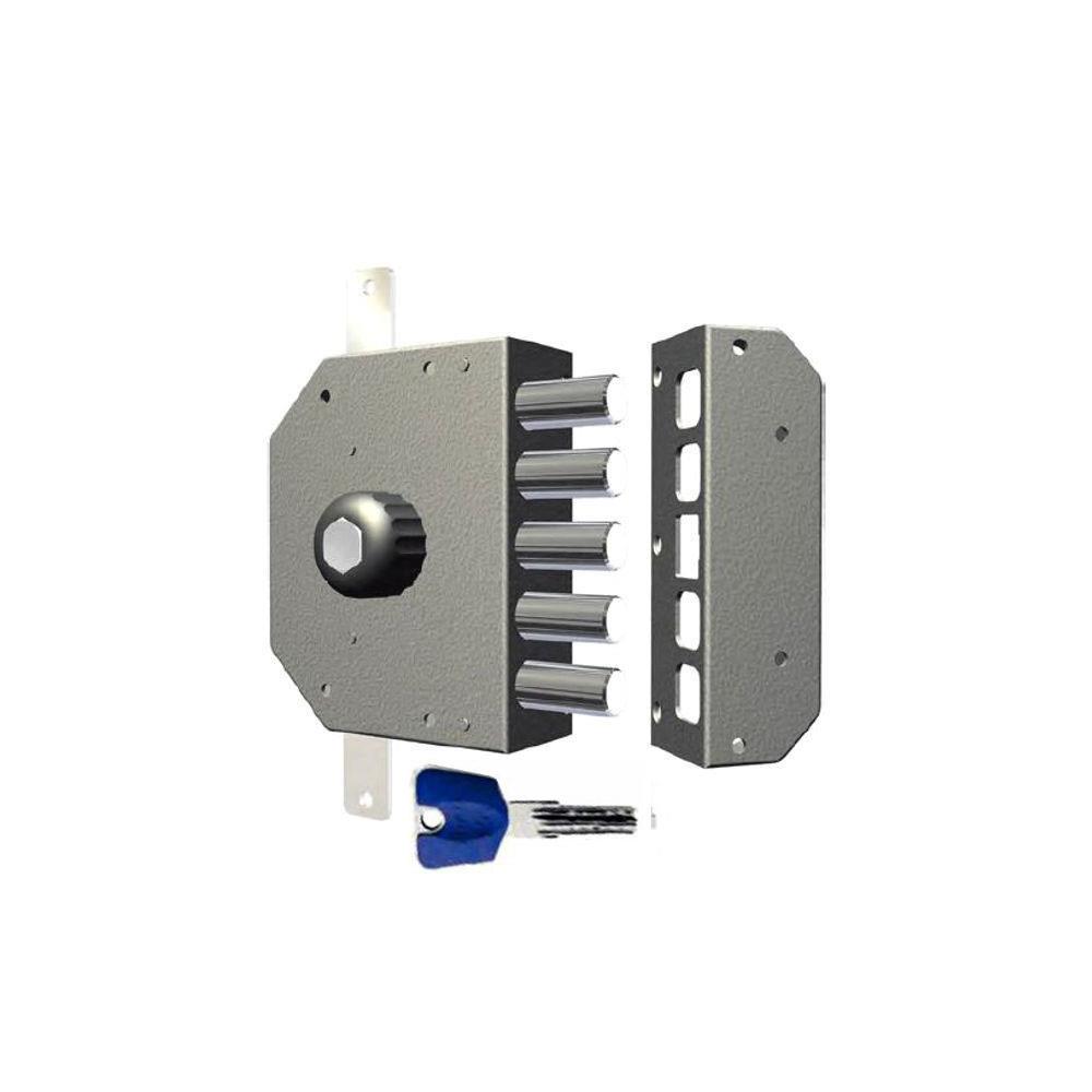 Serratura pompa chiave punzonata applicare legno 2 chiusure verticali - Pomolo interno Catenacci laterali 5 pistoni Interasse catenacci mm 28 Scatola mm 130x164x51,5 - Entrata mm 60,5 Fornita con ferrogliera Aste non incluse Dotazione 3 chiavi punzonate K55