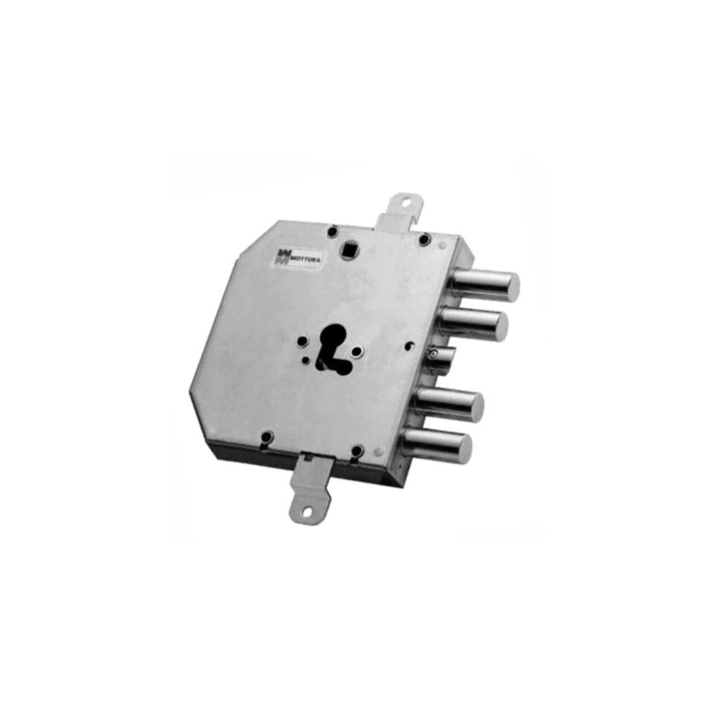 Serratura cilindro europeo applicare legno Trappola anti effrazione - Fori protettore mm 38 2 chiusure verticali Catenacci laterali 4 pistoni e scrocco centrale Interasse catenacci mm 27 Scatola mm 143x150x30 - Entrata mm 69,5 Cilindro e aste non compresi