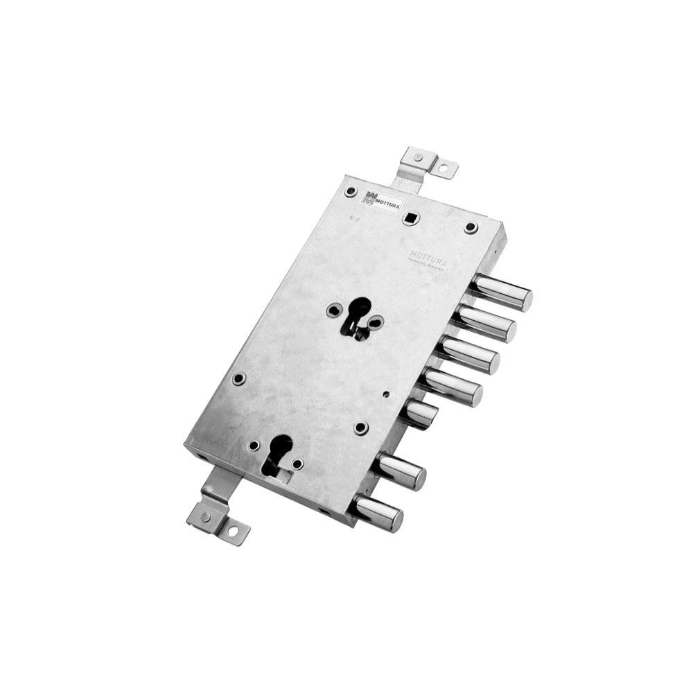 Serratura doppio cilindro europeo applicare legnoMovimento ad ingranaggi 2 chiusure verticali Catenacci laterali 6 pistoni e scrocco Interasse catenacci mm 28 Scatola mm 258x146x31 - Entrata mm 73 Cilindri e aste non compresi