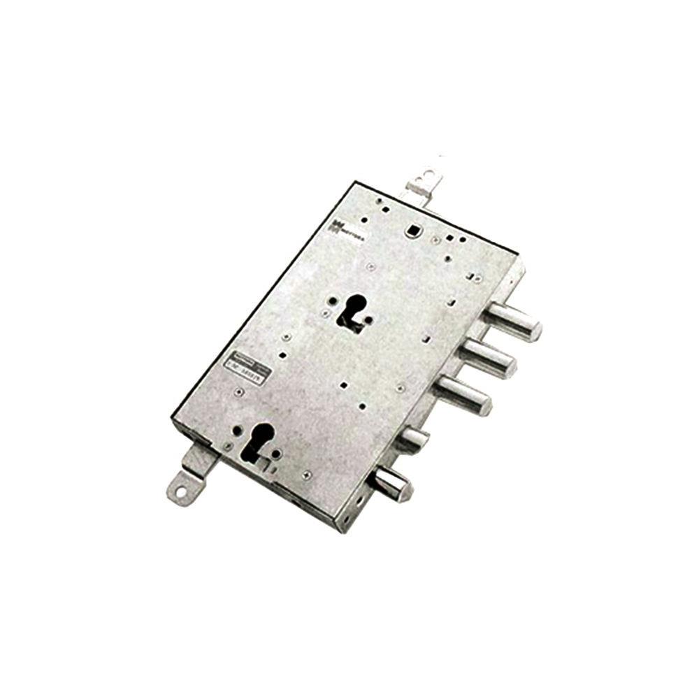 Serratura doppio cilindro europeo applicare legno2 chiusure verticali Catenacci laterali 4 pistonie scrocco Interasse catenacci mm 37 Scatola mm 162x254x30 - Entrata mm 89 Cilindri e aste non compresi