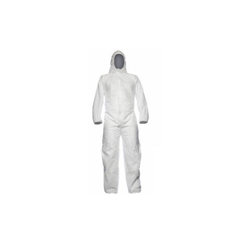 TNT polietilene 100% monouso Trattamento antistatico Cappuccio con elastico Chiusura con cerniera -Elastico caviglie e polsi DPI classe III - Protezione 5/6