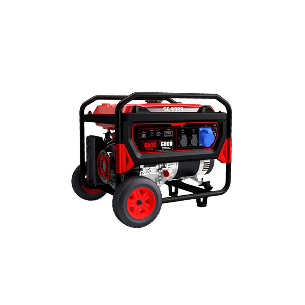 Motore 4T OHV cc 420 Potenza monofase kW 6,0 kVA 6,0 Caricabatterie V12 - Serbatoio l 20 - Peso kg 80 Avviamento manuale autoavvolgente - LwA 99 Db Alimentazione benzina - Dimensioni cm 68x52 h 63 Protezione IP 23 - Autonomia h 6,5 Regolatore elettronico tensione AVR 2 prese 2P+T SK 16A - 1 presa 2P+T CEE 32A Disgiuntore termico di protezione uscita V12 Ruote trasferimento - Display elettronico