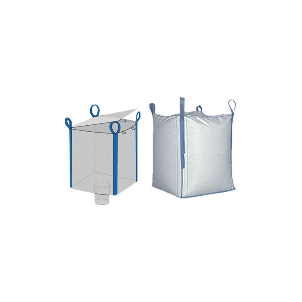 Tessuto polietilene bassa densita' anti UV 4 bretelle sollevamento altezza utile cm 30 Chiusura superiore cm 75 Omologazione Standard UNI EN ISO 9001:2000 Valvola di scarico inferiore diametro cm 35 h 50 Dimensioni cm 91x91 h 120 Peso kg 1,82 - Portata kg 1500