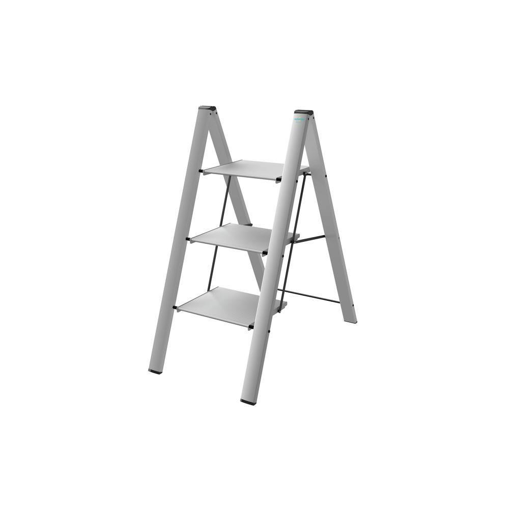 Struttura alluminio e gradini alluminio Gradini cm 33x26 con zigrinatura antiscivolo Blocco sicurezza Portata kg 150 Altezza ultimo gradino cm 50/75 Conforme D.Lgs 81/08 EN14183