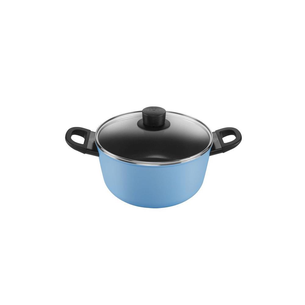 Alluminio - Spessore mm 4,0 Esterno colorato Interno antiaderente KeraGloss Manici bachelite - Ghiera Thermopoint Adatta per induzione e tutte le fonti di calore