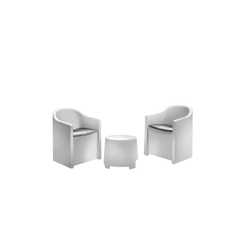 Resina Cuscini colore grigio Composizione: 2 poltrone cm 53x59 h 75 1 tavolino cm 41x35 h 38 Resiste agli agenti atmosferici/muffe/smog/polvere Non adatto ad utilizzo professionale