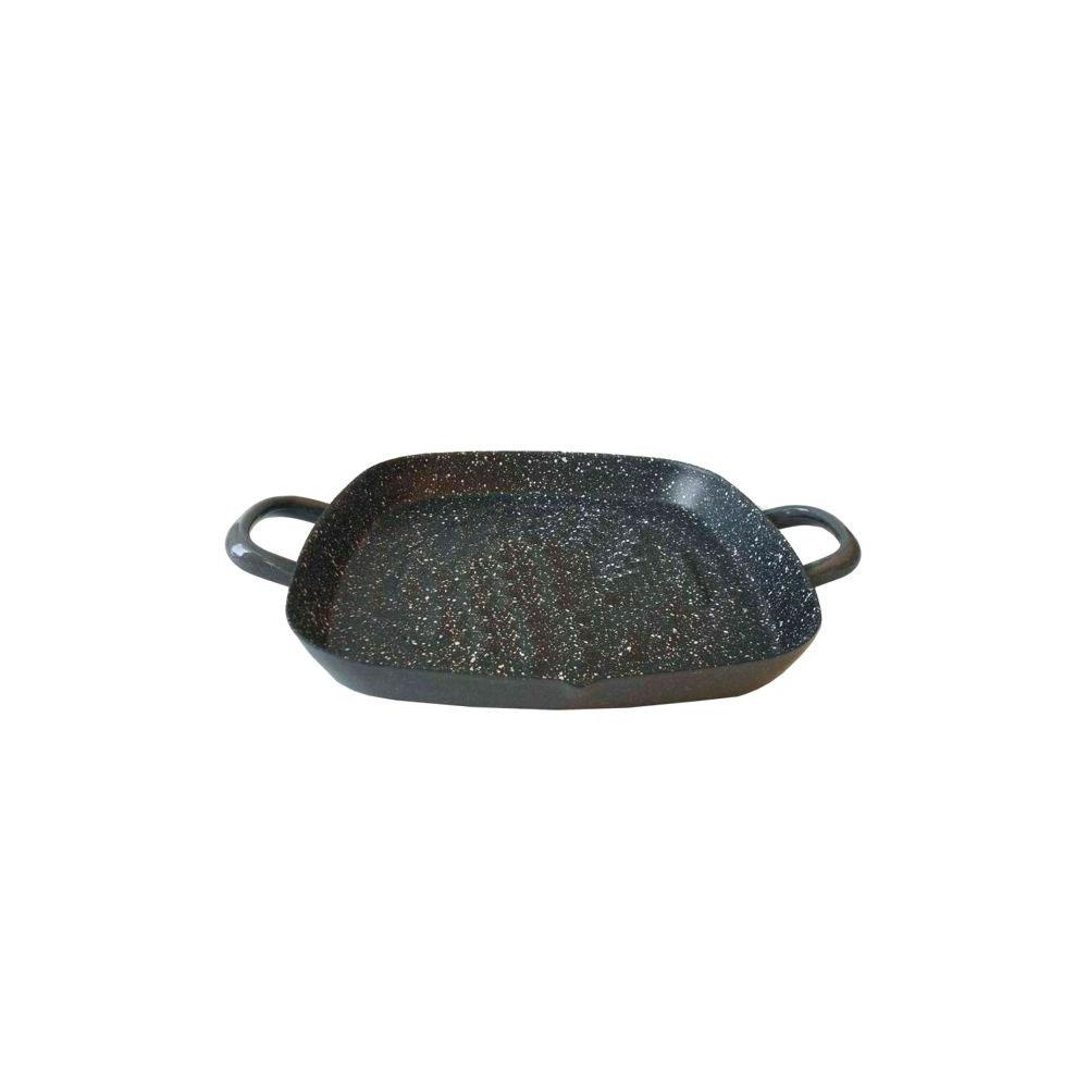 Acciaio smaltato vetrificato - Spessore mm 1,5 Esterno colore grigio Interno antiaderente nero effetto pietra Manici acciaio smaltato Adatta per induzione e tutte le fonti di calore
