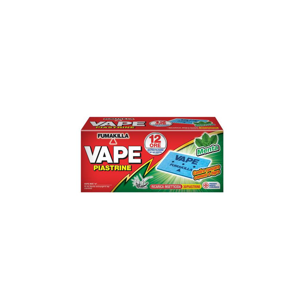 Efficace azione contro zanzare e zanzare tigri Durata 12 ore - Puo' essere utilizzato con qualsiasi elettroemanatore Vape 3 Fori brevettati per protezione sulle piastrine Profumazioni assortite menta e geranio