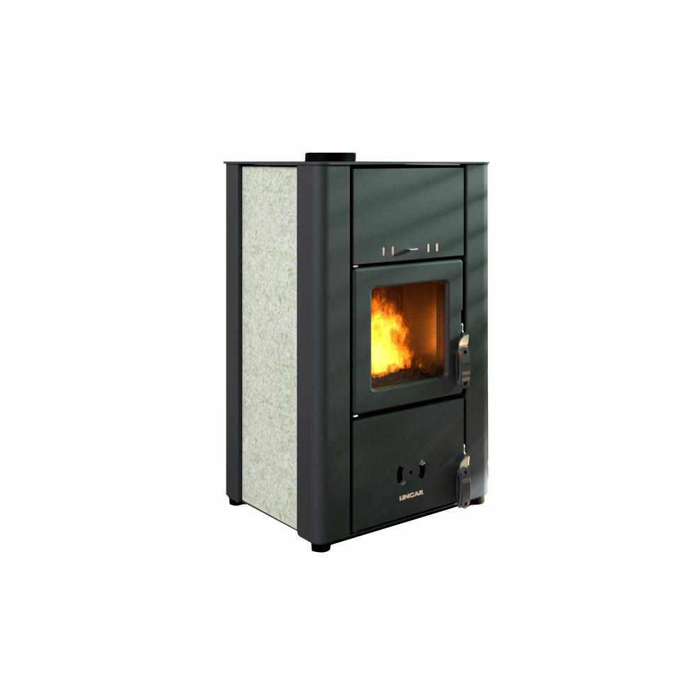 Dimensioni 49x51 h 87 - Uscita 13 - Peso kg 125 Potenza kW 7,4 - mc 180 Struttura acciaio Focolare ghisa e vermiculite Top e portine acciaio Rivestimentopietra Sportello focolare con vetro Cassetto portacenere Ventilata -Interruttore e termostato