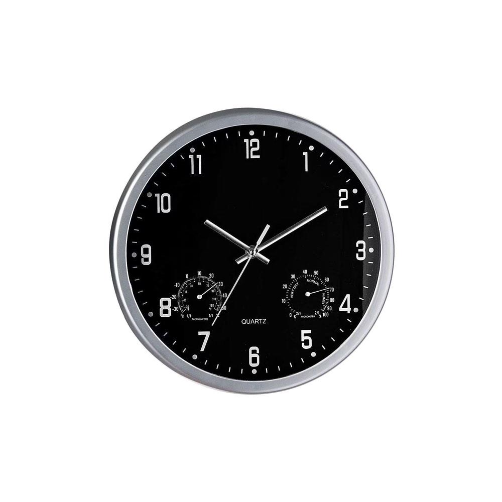 Cornice plastica Quadrante bianco/nero - Fronte vetro Gancio appendere Termometro e igrometro integrati Alimentazione 1 pila AA non inclusa Colori assortiti bianco e nero
