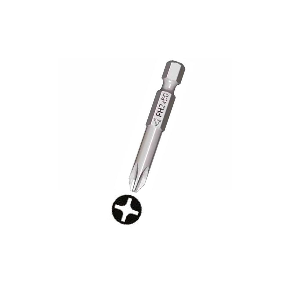 Inserto per viti croce Phillips Acciaio cromo vanadio temprato durezza 58/60 HRC Modello standard per avvitamento morbido/duro Attacco 1/4" - Lunghezza mm 50