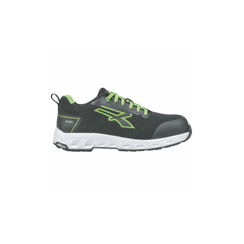 Tomaia U-KNIT elasticizzata lavorazione laser Fodera traspirante NeoSoft Suola EVA e gomma - Intersuola PU espanso Puntale Compotoe fibra di vetro Soletta U-Power original traspirante, anatomica e antibatterica Antistatica, antiolio e antiscivolo Protezione classe S1P - Colore nero/verde Antistatica, antiolio e antiscivolo Protezione classe S1P - Colore grigio/ver