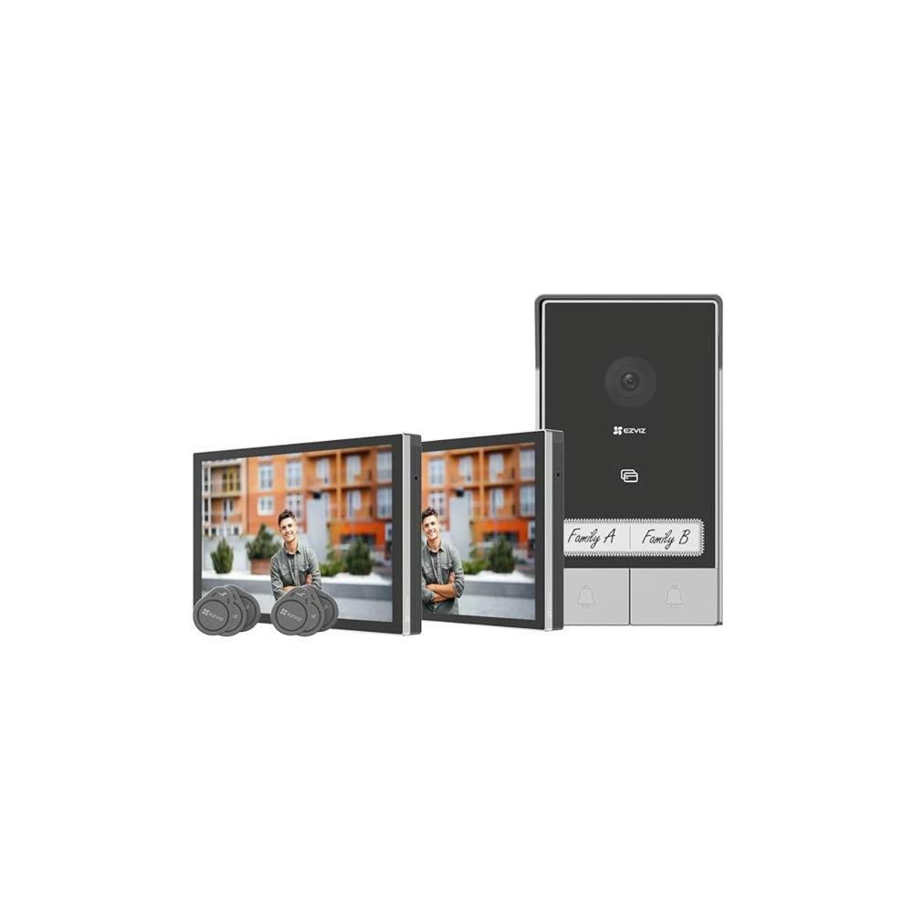 Collegamento cablato 2 fili Audio bidirezionale - 2K - Impermeabile Rilevazione e tracciamento automatici di movimento Connessione Wi-Fi Sblocco porta/cancello remoto, 6 tag RFID inclusi o QR code Pz 2 monitor interni touch 7 Doppiocampanello integrato con suonerie multiple Supporto scheda MicroSD max 512 GB Area rilevamento personalizzabile