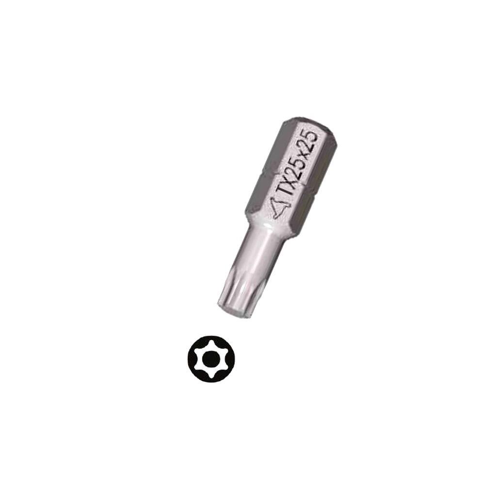 Inserto per viti Torx con foro Acciaio cromo vanadio temprato durezza 58/60 HRC Modello standard per avvitamento morbido/duro Attacco 1/4" - Lunghezza mm 25