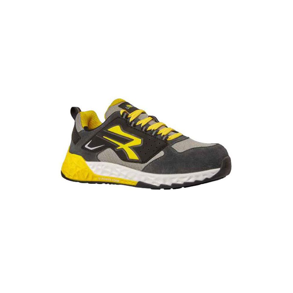 Tomaia U-KNIT elasticizzata lavorazione laser e pelle scamosciata Fodera traspirante Wingtex Suolagomma Intersuola Super Critical Technology Puntale NanoFiber fibra di vetro Soletta U-Power original traspirante, anatomica e antibatterica Antistatica, antiolio e antiscivolo Protezione classe S1P - Colore grigio/giallo