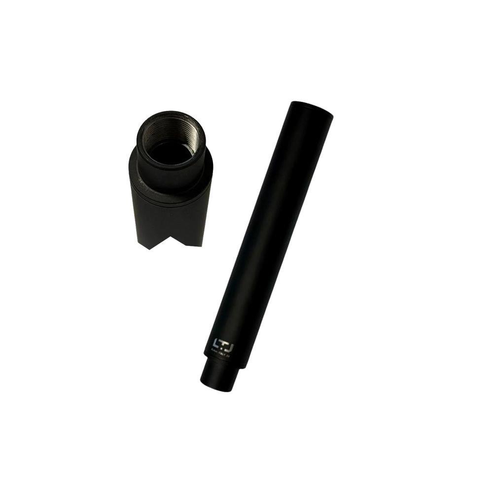Silenziatore pistola ad aria compressa CO2 Struttura metallo Diametro canna mm 12,5 Effetto silenziatore e potenziatore joule +5 Omologata utilizzo paintball Adatto pistole PB528 Canik Standard e Competition Dimensioni cm 16x2,5
