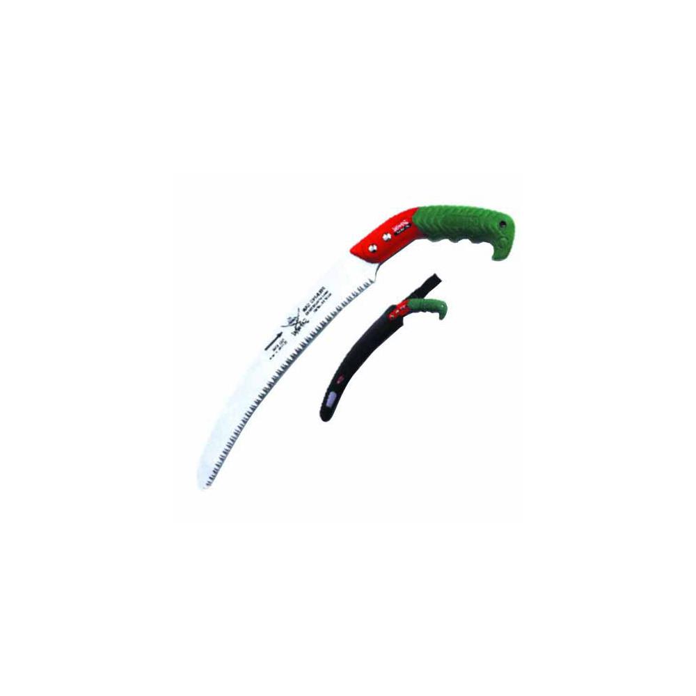 Lama curva dentatura rettificata Denti a taglio uniforme alta efficienza Manico fisso ergonomico a pistola Dotazione fodero con passanti cintura Adatto per lavori di potatura generici