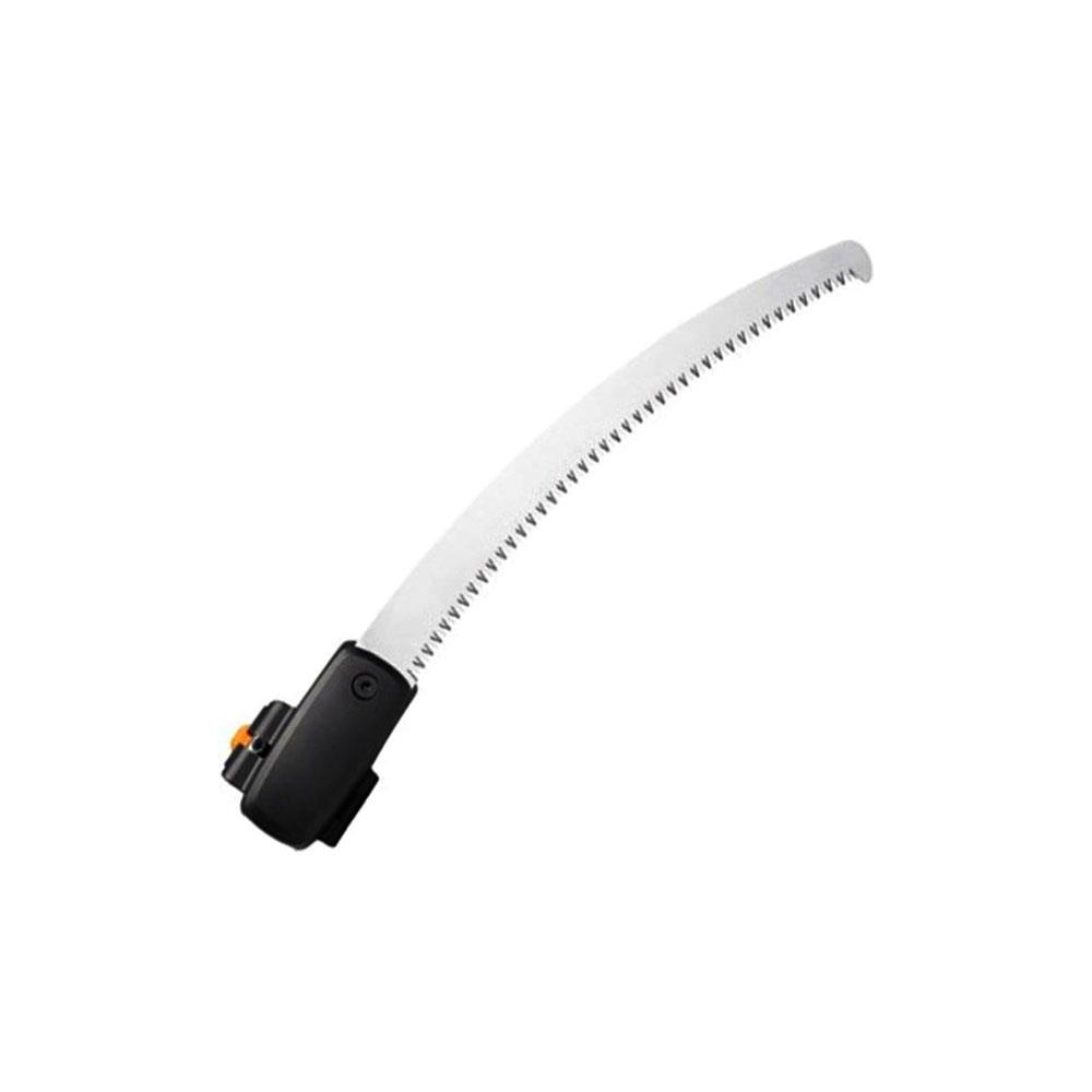 Lama curva acciaio temprato Denti con arrotaturaspeciale Angolo di taglio regolabile Adtto per taglio rami fino mm 80 Sistema aggancio svettatoi PowerGear X UPX86 Lunghezza mm 470 - Peso g 235