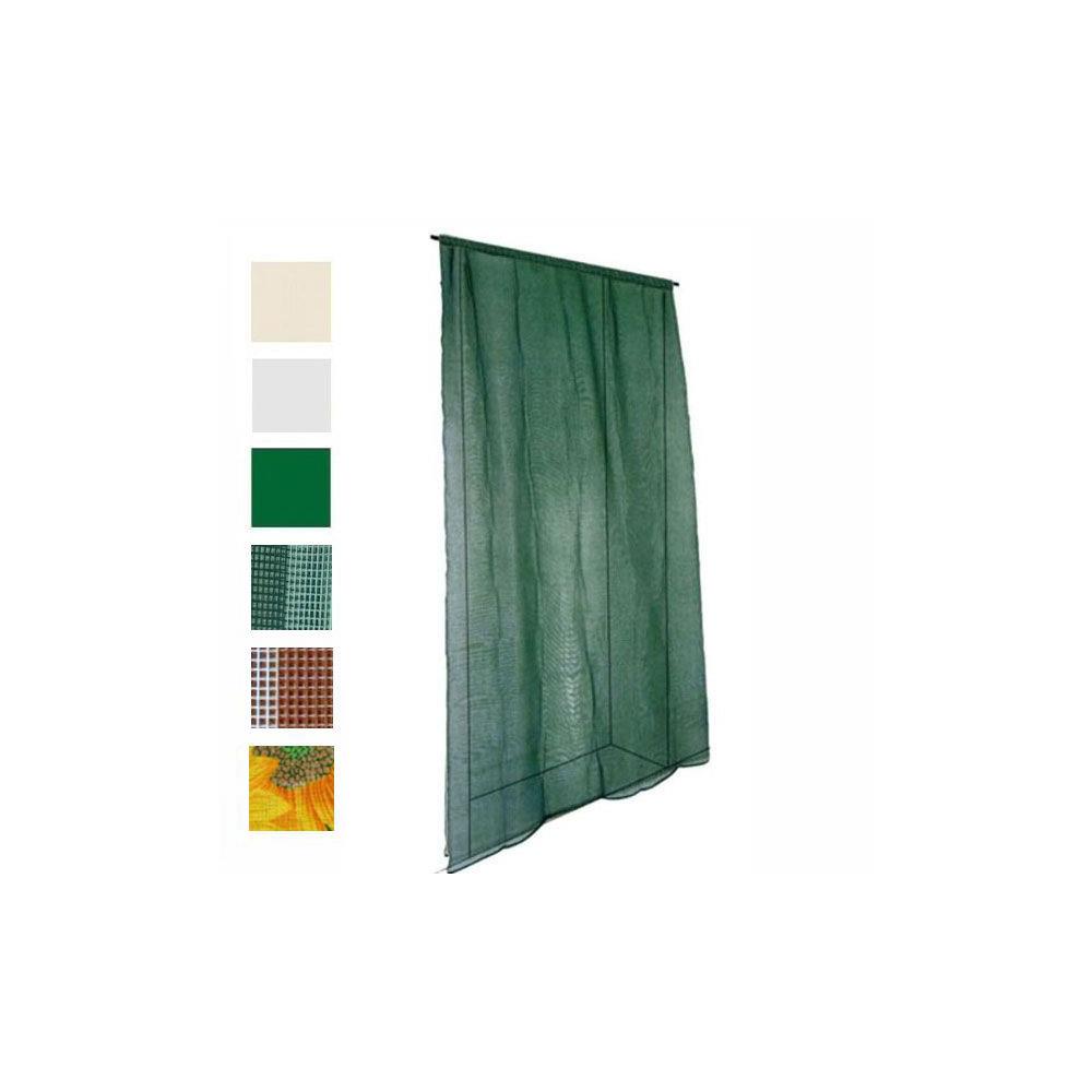 Rete poliestere Bordo superiore con occhioli infilabile a tubo Piombino inferiore per tensionamentoverticale Completa di ganci Adatta per porte ingresso Colori: avorio, bianca, verde, rigata verde, rigata marrone, decorata girasoli