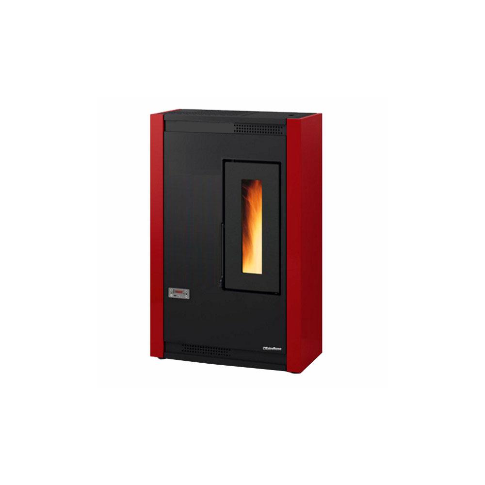 Dimensioni 57x31 h 89 - Peso kg 64 - mc 126 Potenza kW 2,4/4,4 - Consumo pellets kg/h 0,5/1,0 Ventilazione forzata - Alimentazione automatica Capacita' serbatoio kg 10 - Struttura acciaio Scambiatoredi calore a fascio tubiero Braciere e porta in ghisa Display controllo a led - Telecomando Uscita fumi mm 80 Rivestimento acciaio smaltato