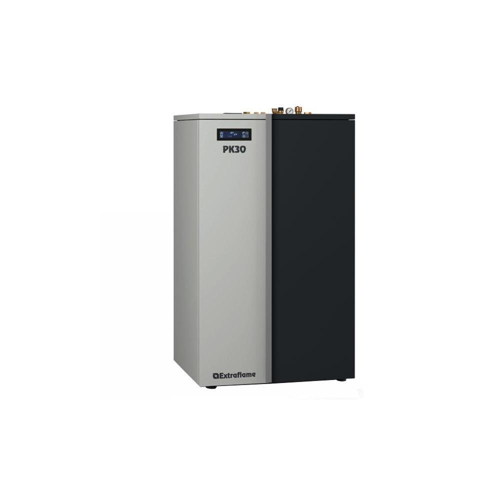 Dimensioni 89x74 h 140 - Peso kg 310 - mc 860 Potenza kW 9,6/32,5 - Consumo pellets kg/h 2,0/6,8 Accensione automatica Uscita fumi mm 120 - Serbatoiokg 75 Dotazione: pompa circolazione e vaso espansione Candeletta ceramica ad alta efficienza Sonda termica in camera di combustione Pulizia automatica braciere e scambiatore calore