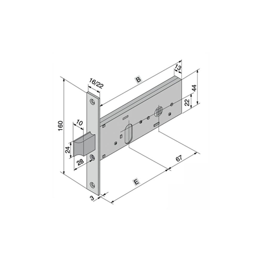 Serratura montanti alluminio infilare Acciaio zincato bianco - Senza incontro Scrocco reversibile 2mandate+mezza, quadro mm 8 Scatola mm 150x44 160x44 - Frontale mm 16x160 Entrata mm 60/70 - Cilindro serie 702 non incluso