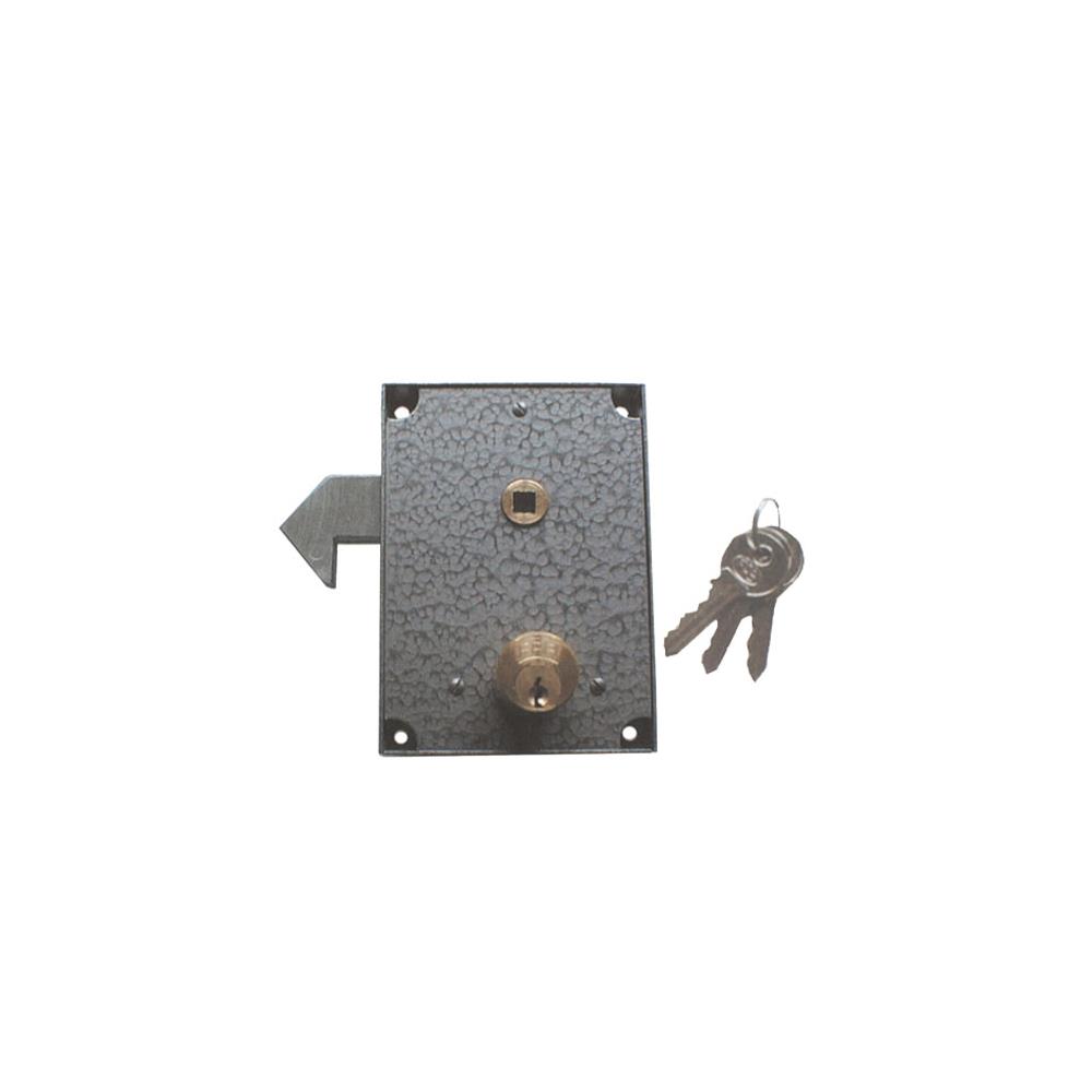 Serratura martellata grigia a gancio Applicare cancelli scorrevoli Quadro maniglia mm 8 Scatola mm 100x140 - Entrata mm 55 Cilindro lungo FPB 256 - 3chiavi