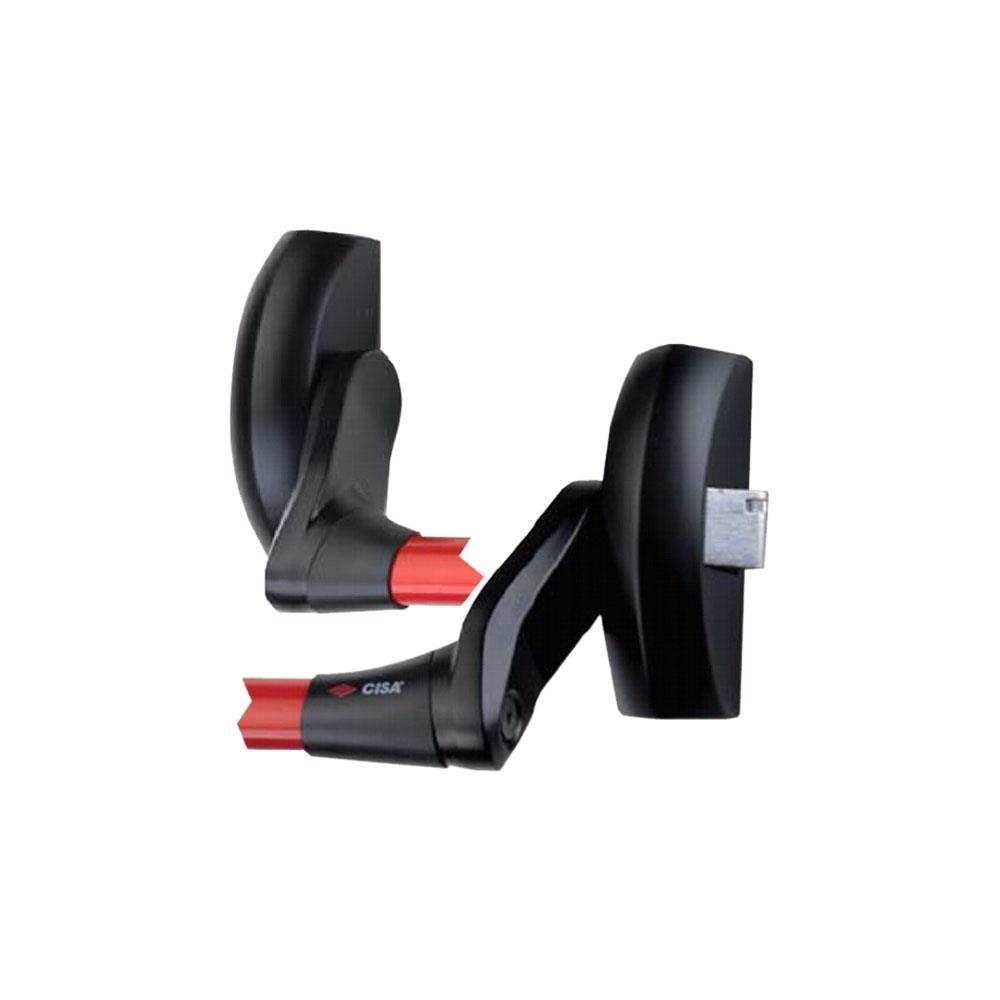 Maniglione uscite d'emergenza Carter alluminio verniciato nero Scrocco autobloccante - Chiusura laterale Dotazione bocchette e viti fissaggio Mano ambidestra - Barra orizzontale non inclusa